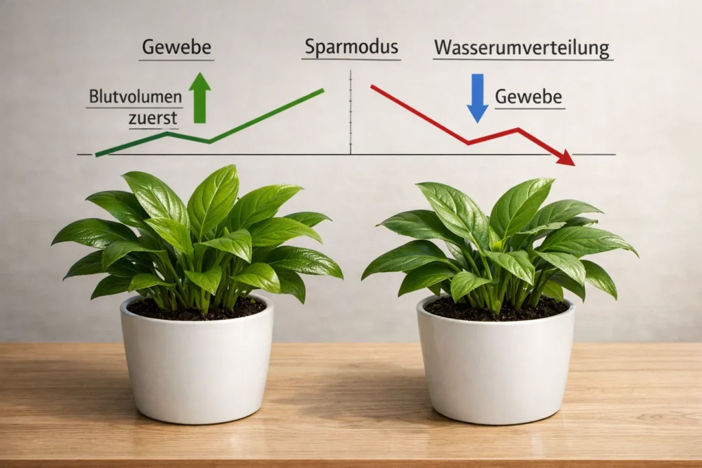 Durst entsteht in diesem Gefüge nicht am Anfang, sondern oft erst dann, wenn der Körper längst umgeschaltet hat. Wenn das Blut bereits konzentrierter wird, wenn das Volumen sinkt, wenn das System begonnen hat, Wasser aus Geweben abzuziehen, um die Versorgung von Gehirn und Kreislauf aufrechtzuerhalten. Der Körper ist an dieser Stelle nicht „zu spät dran“ im dramatischen Sinn, aber er ist bereits im Modus der Priorisierung. Und Priorisierung heißt in der Biologie: Das Wesentliche wird geschützt, alles andere wird nachrangig.
